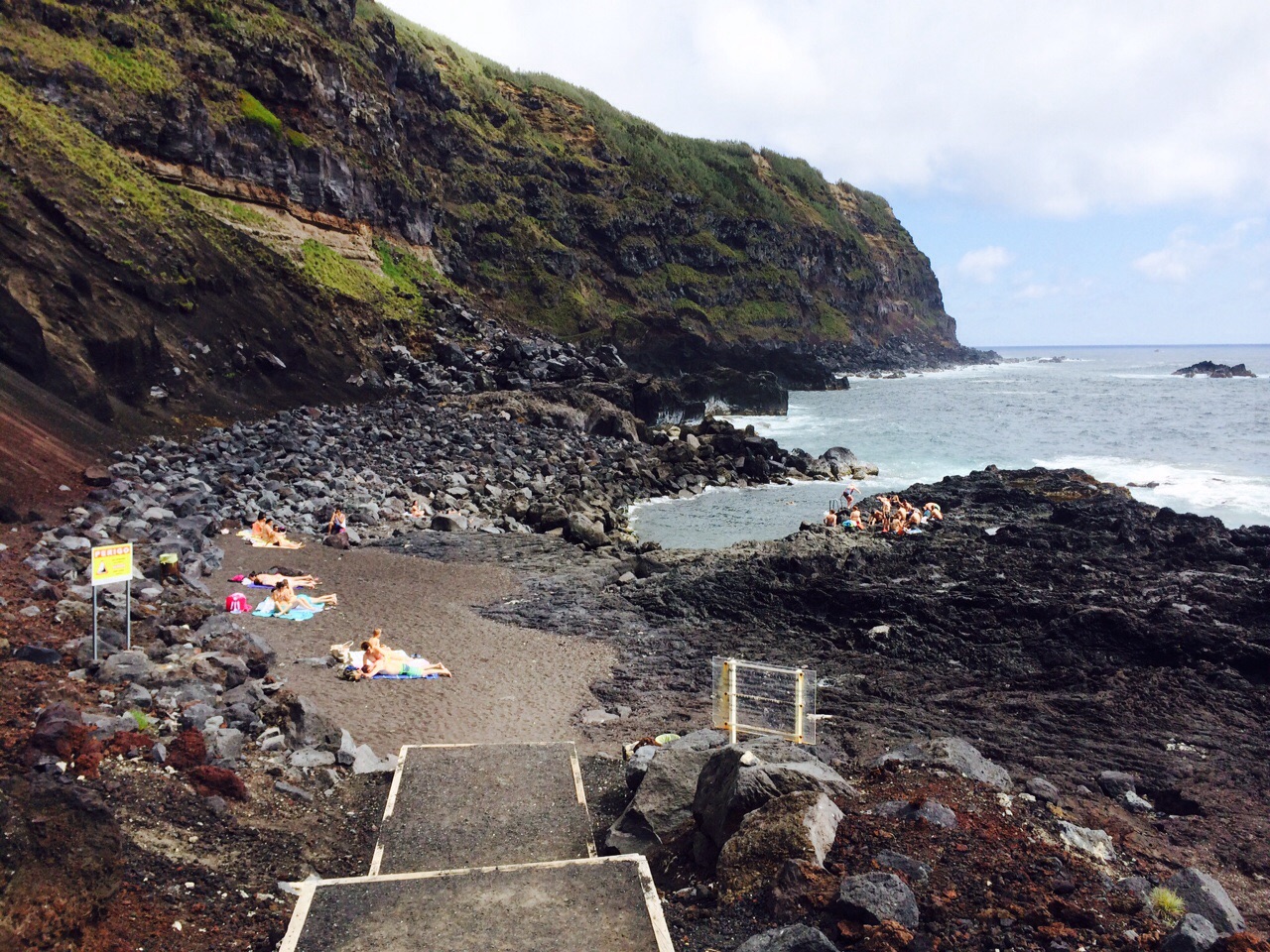 Ponta da Ferraria ist übrigens wunderschön. Absolut beeindruckend die schroffen Vulkanfelsen und die tosende Brandung. Und mitten drin ein Naturschwimmbecken, das zumindest jetzt (noch?) überhaupt nicht überlaufen war.