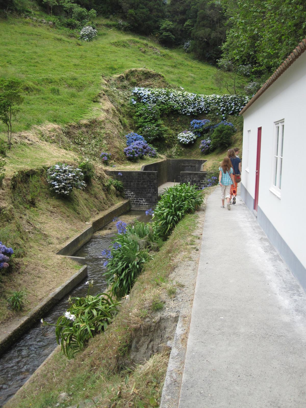 Nichts rührt sich am 1,2 km langen Tunnel, der das überschüssige Seewasser durch den Kraterrand zum Meer leitet. Er war immer für Jugendliche und jüngere Touristen, oft auch mit Fahrrädern, eine leicht gruselige Abkürzung in Richtung Mosteiros.