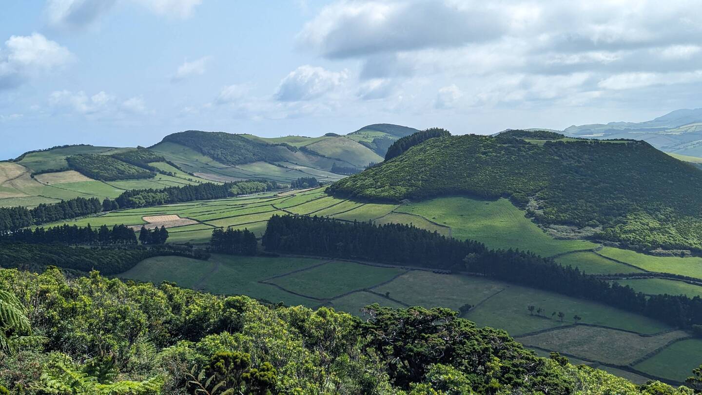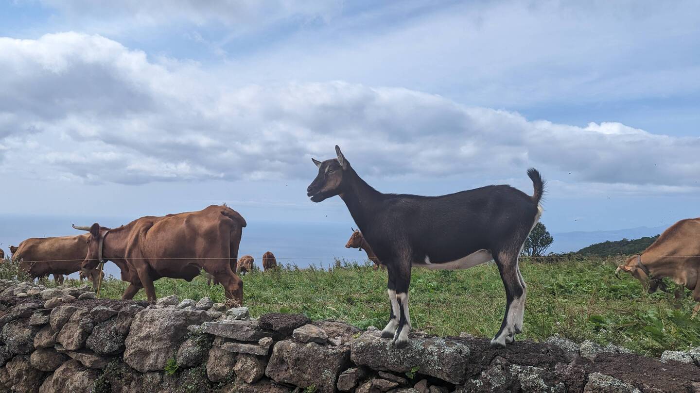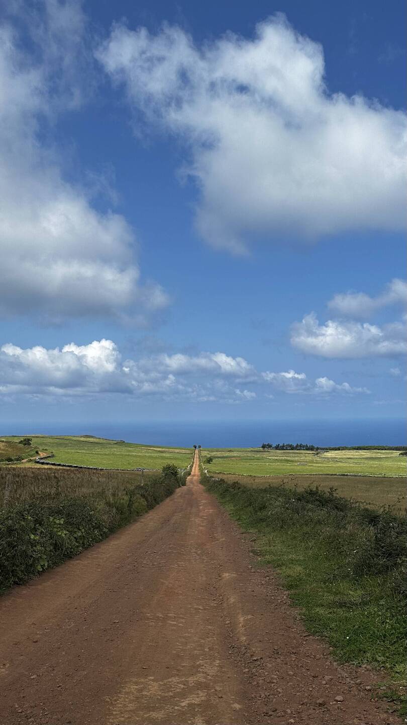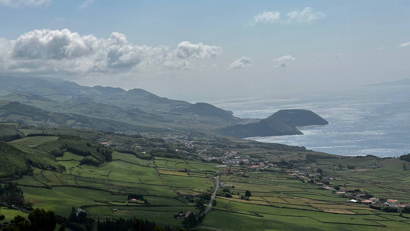 Heute wollen wir nur etwas Kleines unternehmen. Eine Wanderung im Osten der Insel soll es sein, beschliessen wir nach dem Frühstück. Doch die Fahrt durch die wunderschöne Landschaft zieht sich. Laut Google sollten die 34 Kilometer in 40 Minuten zu schaffen sein. Doch unser kleines Auto ist so schwach, dass wir auf dem ständigen Auf und Ab und Links und Rechts der hiesigen Strassen nur selten die Höchstgeschwindigkeit erreichen. Hinzu kommt, dass immer wieder Kühe von einer Weide zur nächsten ziehen und wir dann nur im Kuhtempo vorankommen. Doch verglichen mit den Strapazen, die diese Strecke früher für die Bewohner bedeutete, ist es heute ein Katzensprung. Denn lange Zeit trennte die auf 900m liegende Hochebene Serra do Topo, die wir gerade durchquert haben, die Menschen im Osten vom Rest der Insel, und so war es für viele einfacher, mit dem Boot auf die 170 Kilometer entfernte Insel Terceira zu fahren, als den Weg über die Hochebene zu nehmen. Auch heute noch liegt Topo, der östlichste Ort hier, ziemlich abgelegen und wer nach Calheta oder Velas will, muss wie wir erst einmal eine lange Autofahrt über die hügelige, nur von weidenden Rindern bevölkerte Hochebene in Kauf nehmen.
