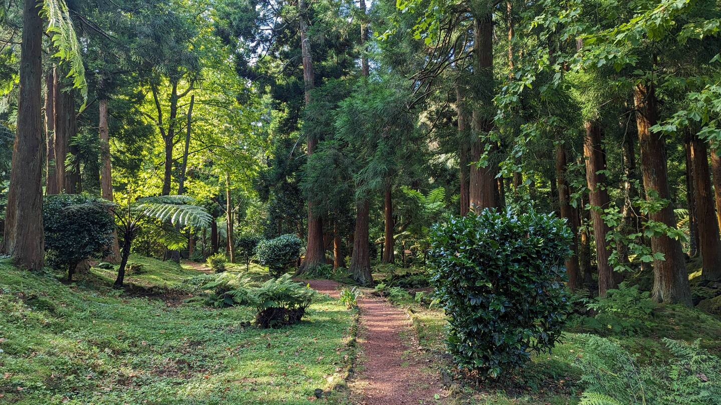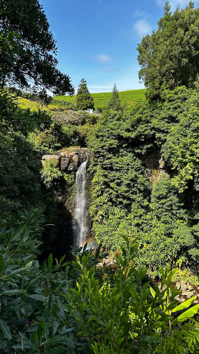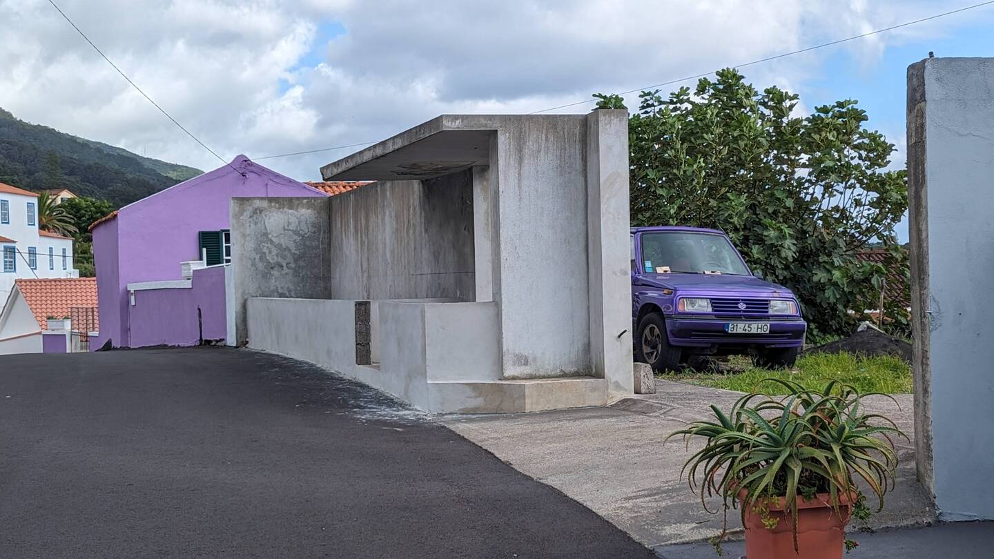 Die Wanderung ist für hiesige Verhältnisse einfach. Zwar geht es, wie wohl auf allen Wegen auf dieser Insel, ständig bergauf und bergab, aber auf guten Feldwegen. Wir genießen die Aussicht, sehen nur sattes Grün um uns herum und in der Ferne das Meer. Allerdings brauchen wir für den Hinweg fast doppelt so lange wie unser Wanderführer (Rother) angibt und so beschliessen wir, den Rückweg teilweise auf der Hauptstrasse und auf einfacheren, aber vielleicht nicht ganz so eindrucksvollen Wegen zurückzulegen. Dabei kommen wir auch an der einzigen Café/Bar weit und breit, dem "Café e Mercearia Alves", vorbei und nutzen die Gelegenheit auf eine Kima (eine lokale, extrem leckere und ebenso süsse Maracuja-Limonade) und ein Eis am Stil einzukehren (Total 3.70€). Das ganze Lokal besteht aus einem gekachelten Raum mit einer Bar und 4 kleinen Tischen. An der Bar sitzen 4-5 Bauern/Arbeiter, die gerade ihre Pause machen. Ihre angeregte Diskussion lässt den gekachelten Raum so stark vibrieren, dass sich die Schwingungen sogar über den Boden auf meine Füsse und Beine übertragen. Auch wenn es eigentlich das "echte Leben" ist, das man als Tourist sucht, ist es uns dann doch etwas zu echt und wir schauen, dass wir so schnell wie möglich austrinken, um wieder in die ländliche Ruhe zurückkehren zu können.