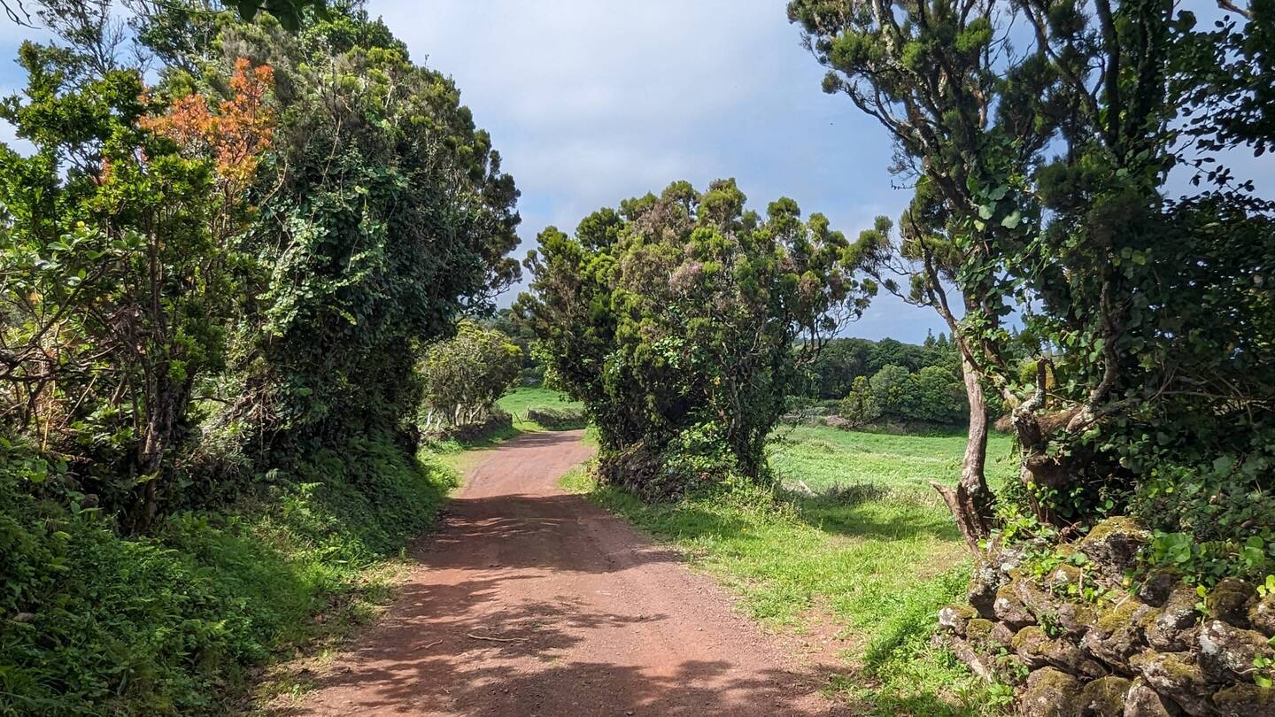 Die Wanderung beginnt in der Serra do Topo auf 680 m Höhe und endet an der Fajã de Cubres (siehe die Erklärung zu den Fajãs im gestrigen Artikel über die Fajã d'ouvidor). Aus logistischen Gründen muss also ein Transport zwischen den beiden Punkten organisiert werden. Vor fünf Jahren hatten wir das Auto auf dem kleinen Parkplatz in der Serra do Topo abgestellt und bei der Ankunft in der Fajã versucht, ein Taxi zu finden (per Telefon), was nicht so einfach war. Diesmal haben wir die Telefonnummer eines Taxis von der Gegend, welches uns von der Farm empfohlen wurde. Wir haben uns auch dafür entschieden, das Auto in der Fajã zu parken, um uns den Stress der Taxisuche am Ende der Wanderung zu ersparen.
