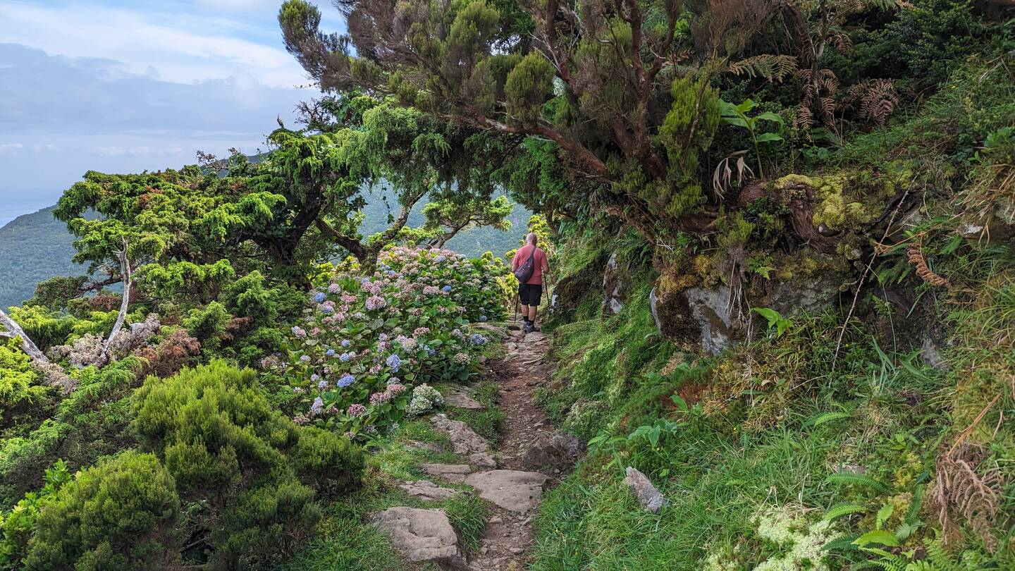 Dieser erste Teil dokumentiert den Abstieg bis zur ersten Fajã unserer Wanderung, der Fajã da Caldeira (Kessel) de Santo Cristo.