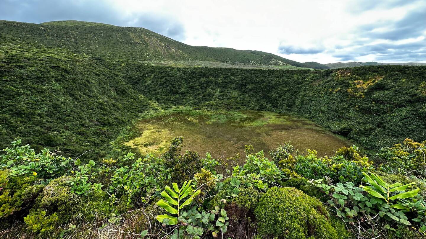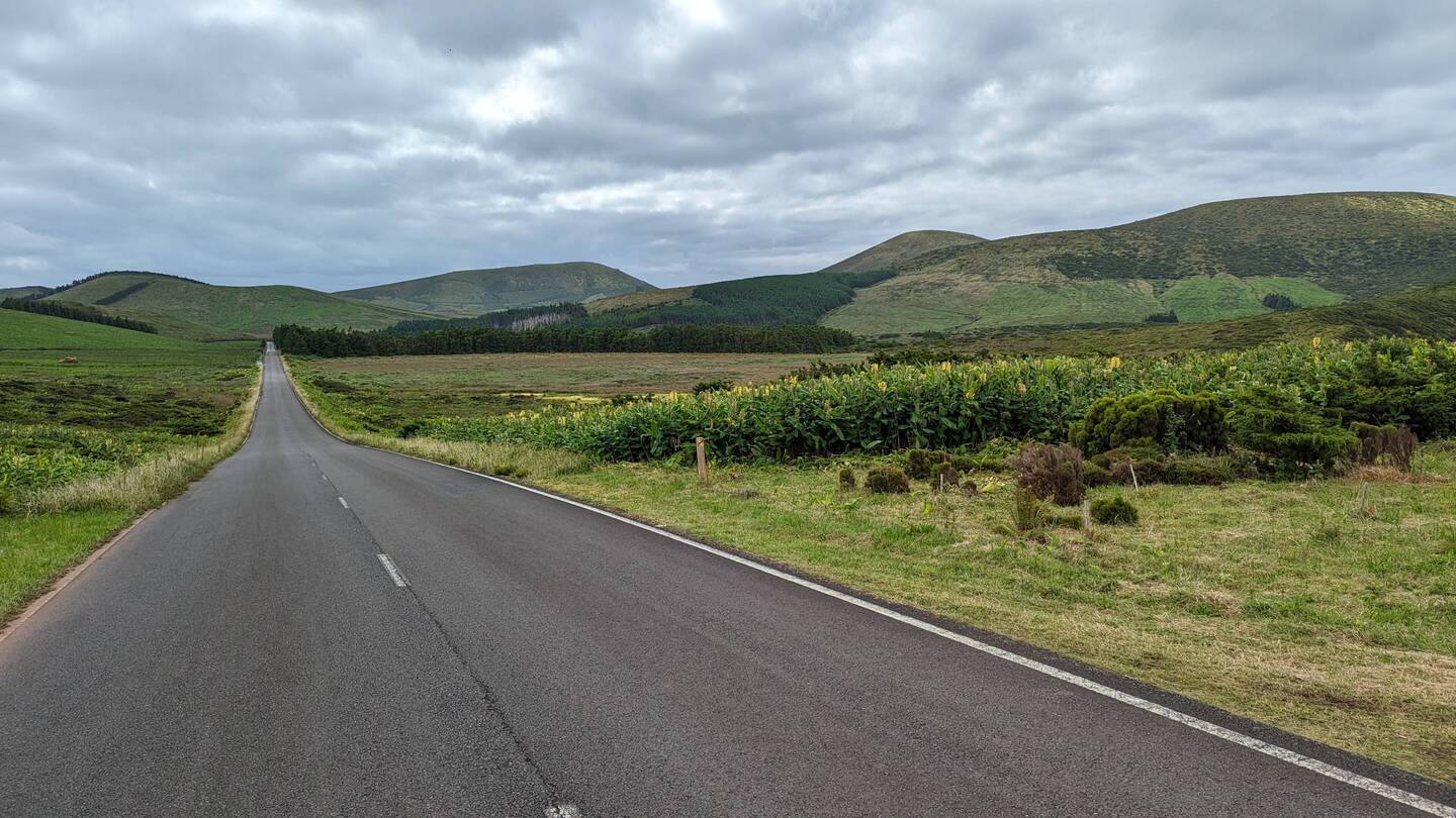 Der Wetterbericht für heute ist Sonnenschein pur, nun beim Aufstehen ist es aber grau und es regnet teilweise sogar leicht. Da Flores die Insel der Azoren mit am meisten Niederschlag ist, wundert uns dies nun nicht wirklich. Wir beachten das Wetter nicht weiter und fahren nach dem Frühstück zum Reserva Florestal Natural do Morro Alto e Pico da Se. Der Hochebene der Insel, sie besteht hauptsächlich aus Mooren und Kraterseen.