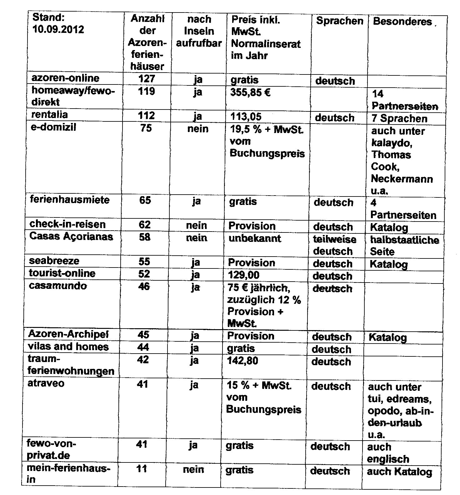 Dazu gehören die bekannten Reisebüros mit Schwerpunkt Azoren.