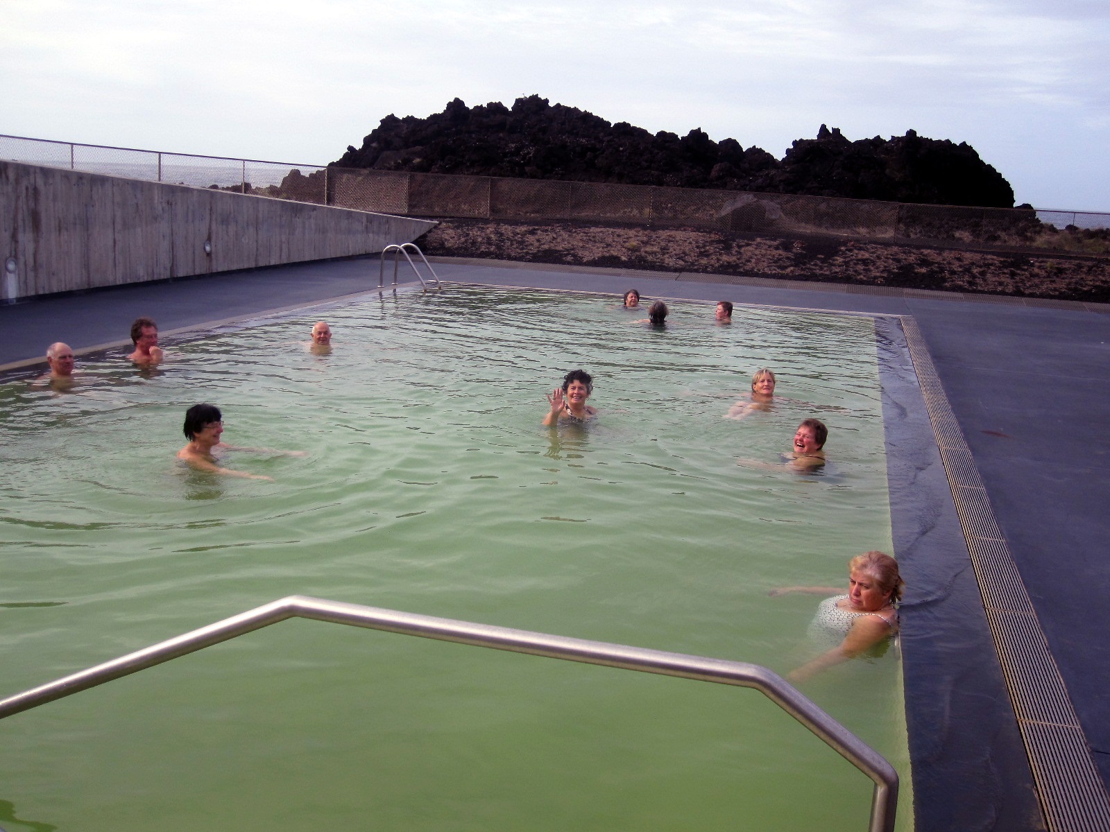 Inklusive Schwimmbad kostete alles zusammen pro Person 10 €. Wir sagten dem jungen Mann, er müsse dieses Angebot unbedingt auch bewerben. Er solle doch draußen die Speisekarte aushängen und auch auf ein Tagesangebot hinweisen. Denn wenn man vor dem Portal des Gebäudes steht, gibt es keinerlei Hinweis darauf, dass sich innen ein Restaurant und auch das Hallenbad mit dem Anwendungsbereich befinden. So gehen die allermeisten Touristen achtlos am Thermalgebäude vorbei und wenden sich dem ausgeschilderten Meeresbecken zu. Dass sich etwas ändern wird, daran glaube ich allerdings nach meiner Kenntnis der azorianischen Mentalität nicht.
