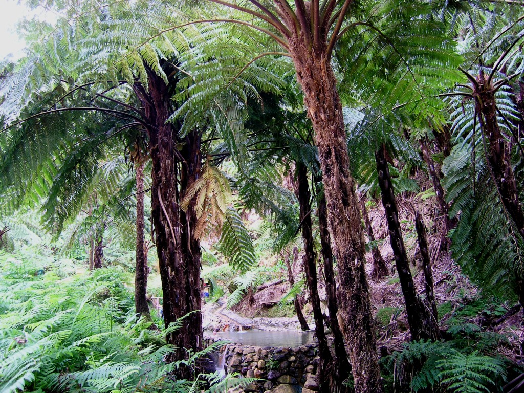 Und die großen Blattwedel gehören zu den dort häufigen Farnbäumen.