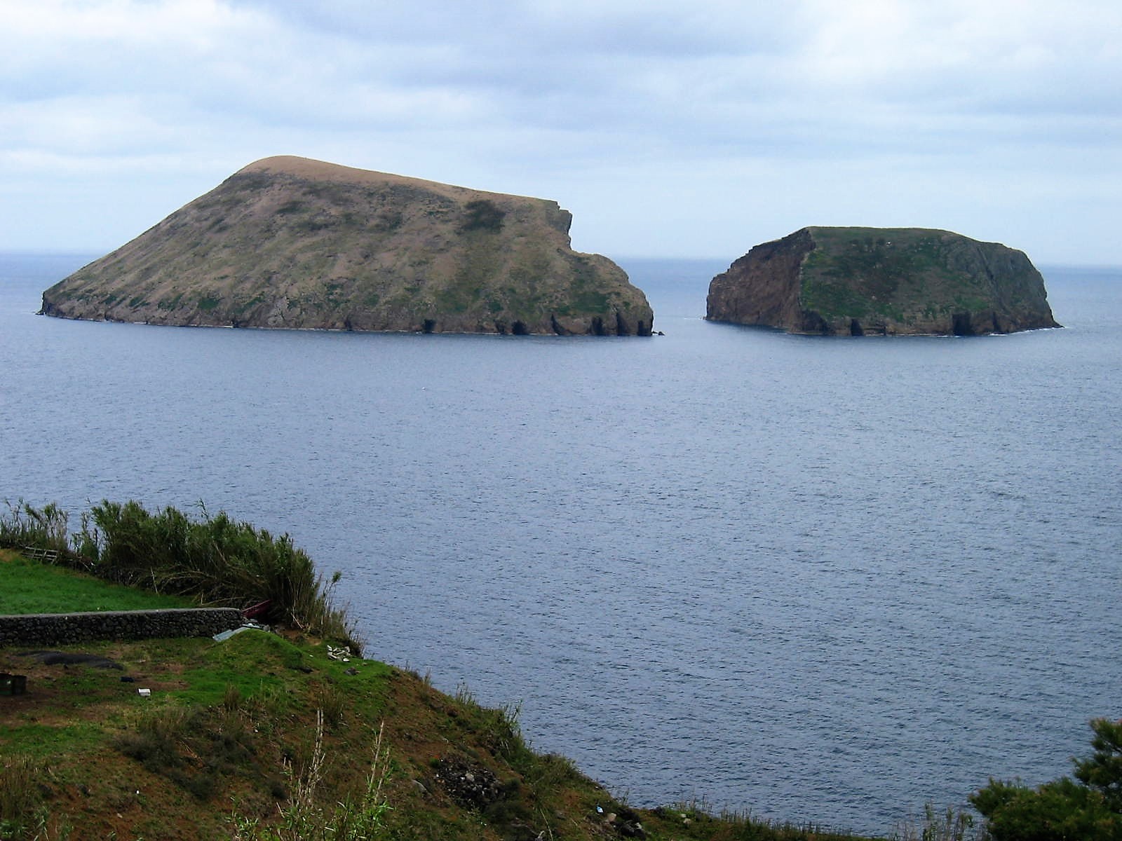 Galiante kennt sich aus. Es ist richtig. Ob die Siedler jedoch Ziegen waren, sei dahingestellt. Cabras werden auf den Azoren auch die Knurrhähne genannt, die dort herumschwimmen. Das linke Inselchen ist maximal 147 m hoch, das rechte 84 m. Es sind die Reste einer Vulkankuppe, dennoch auch heute noch die größten „Ilheus“ (= Inselchen) der Azoren. Besiedelt werden sie vor allem von diversen Seevogelarten, die hier brüten. Aber auch Schafe weiden dort. Die Inseln sind Privatbesitz.