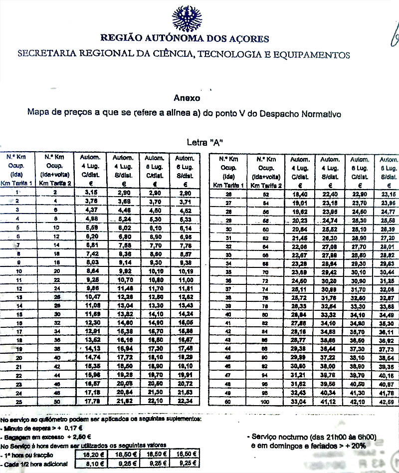 Es KANN sein, dass man als Tourist mit dicken Koffern 2 Euro mehr zahlt, eben wg. der Gepäckgebühr. Deshalb ist ein Taxifahrer noch lange kein Mafioso. Sparsamkeit in allen Ehren, aber man muss auch mal auf dem Teppich bleiben. Wenn Du willst, dass die Azoren ein Billigreiseland werden, dann versuch es mal. Dann wollen wir alle da aber nicht mehr hin, wenn es erst so weit ist.